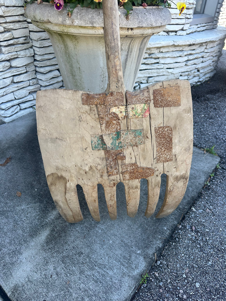 Giant Wooden Hayfork from the Carpathian Mountains, so much character in this beautiful piece! The repairs to the fork are particularly lovely!