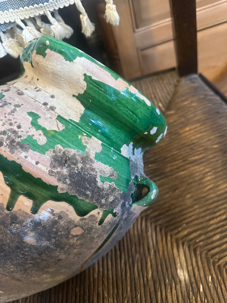 Green Glazed Wall Planter, has a drain hole at the bottom and a place in the back for hanging