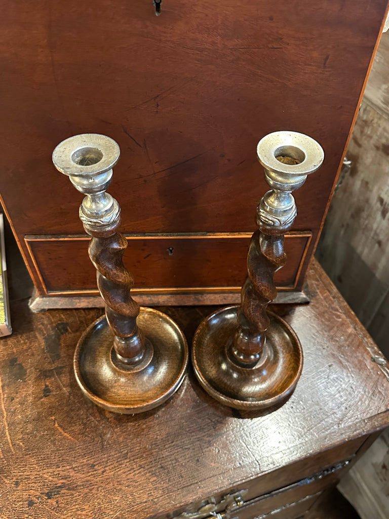 Pair of Barley Twist Candlesticks, Silver Top