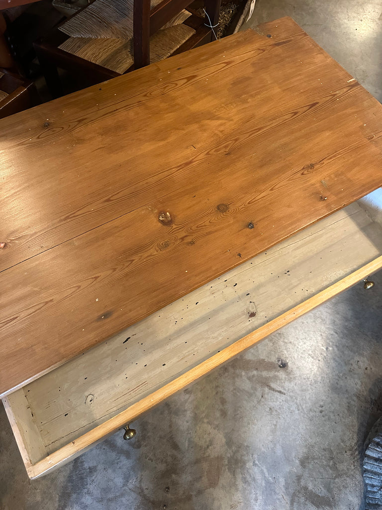 Georgian Pine Coffee Table with One Drawer and Brass Pulls, circa 1830