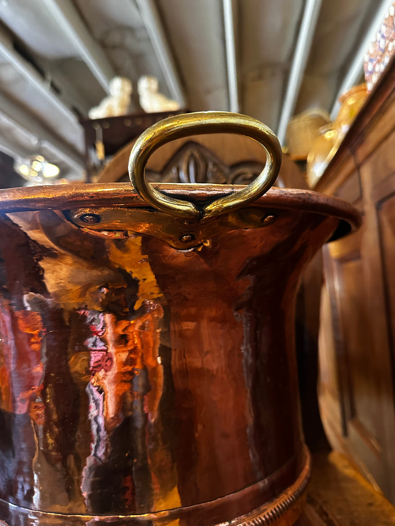 French 19th Century Copper Bowl with Brass Handles