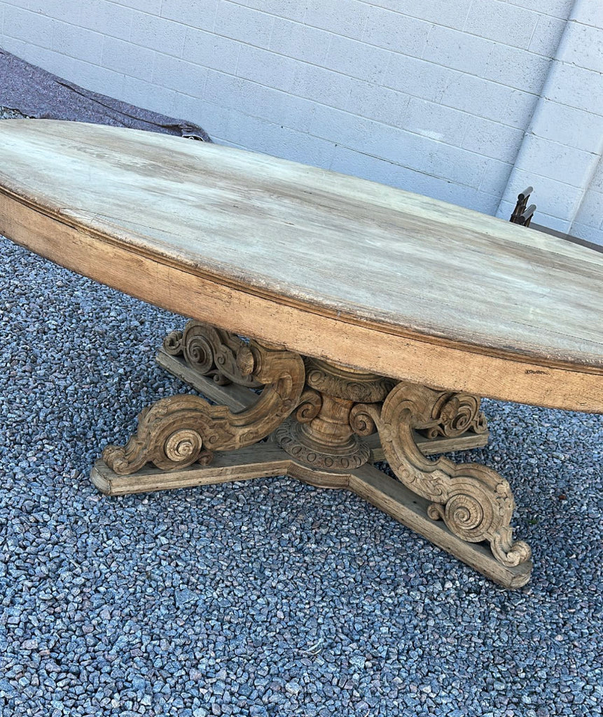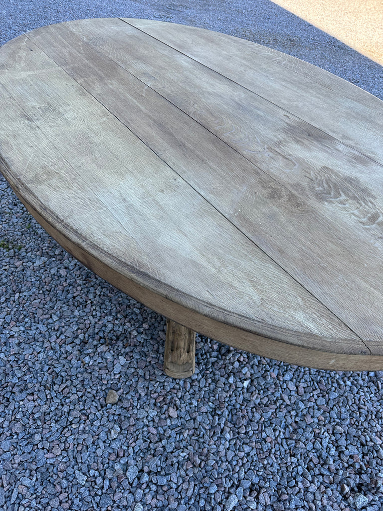 French Oak Carved Pedestal Base Oval Table, circa 1840.