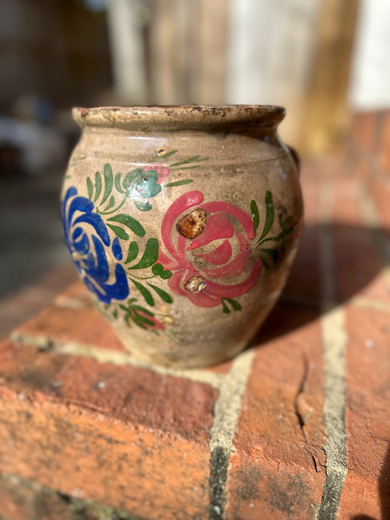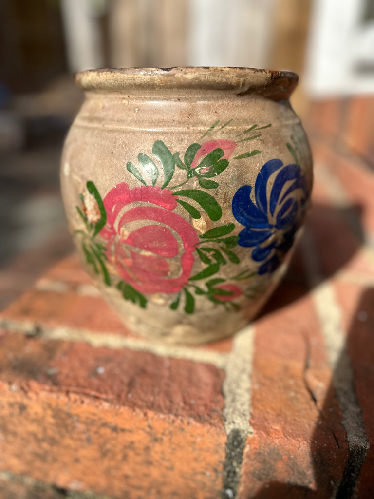 Grey Pyrenees Jug with Blue and Pink Floral Design, 7.5”H