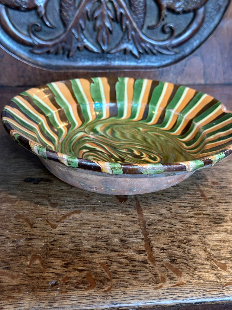 Hand Thrown European Bowl, Cream, Green, Orange and Brown Marble Glaze