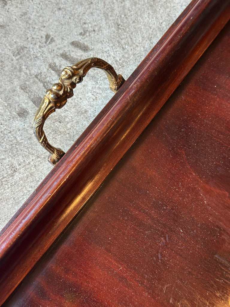 Mahogany Inlaid Tray with Brass Handles, inlay features a musical motif