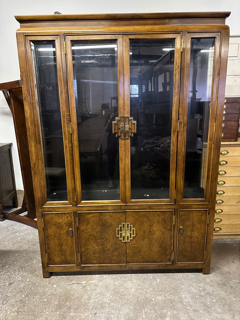 China Cabinet with Lights and Glass Shelves, Dimensions are 58"W x 16.5"D x 82.5"H