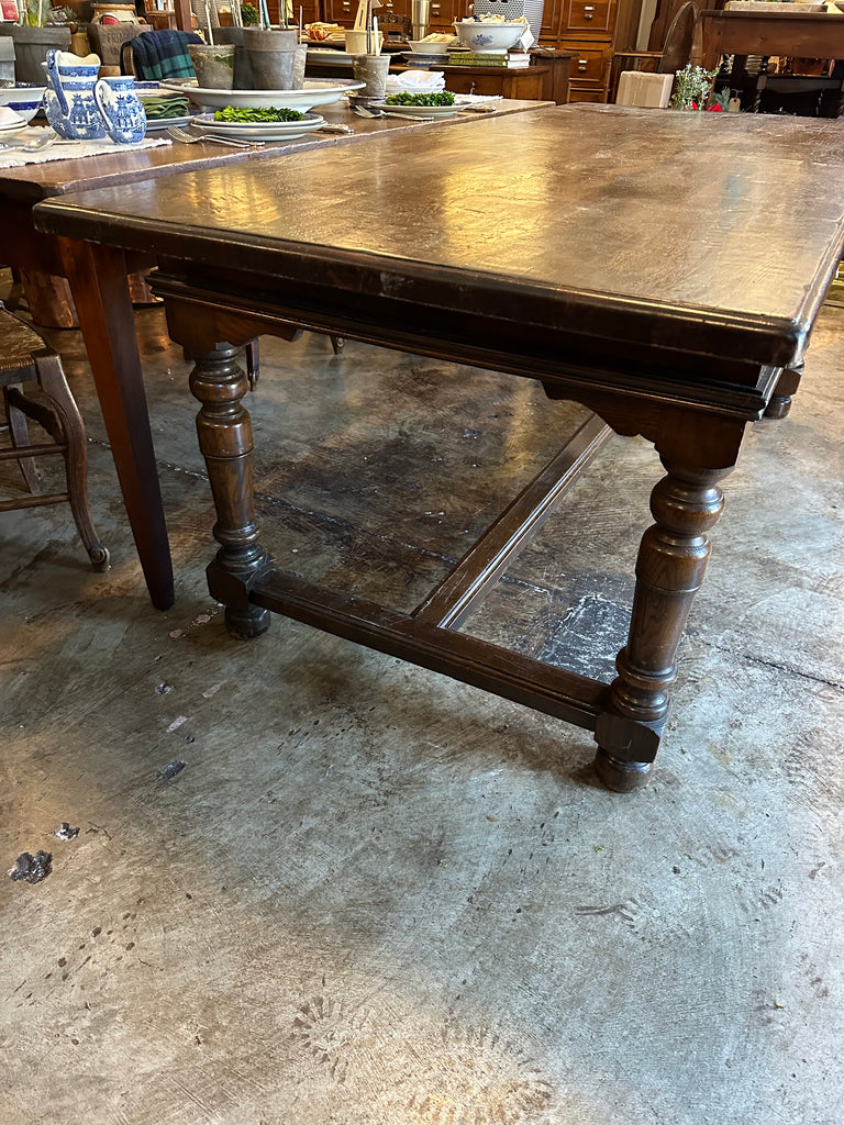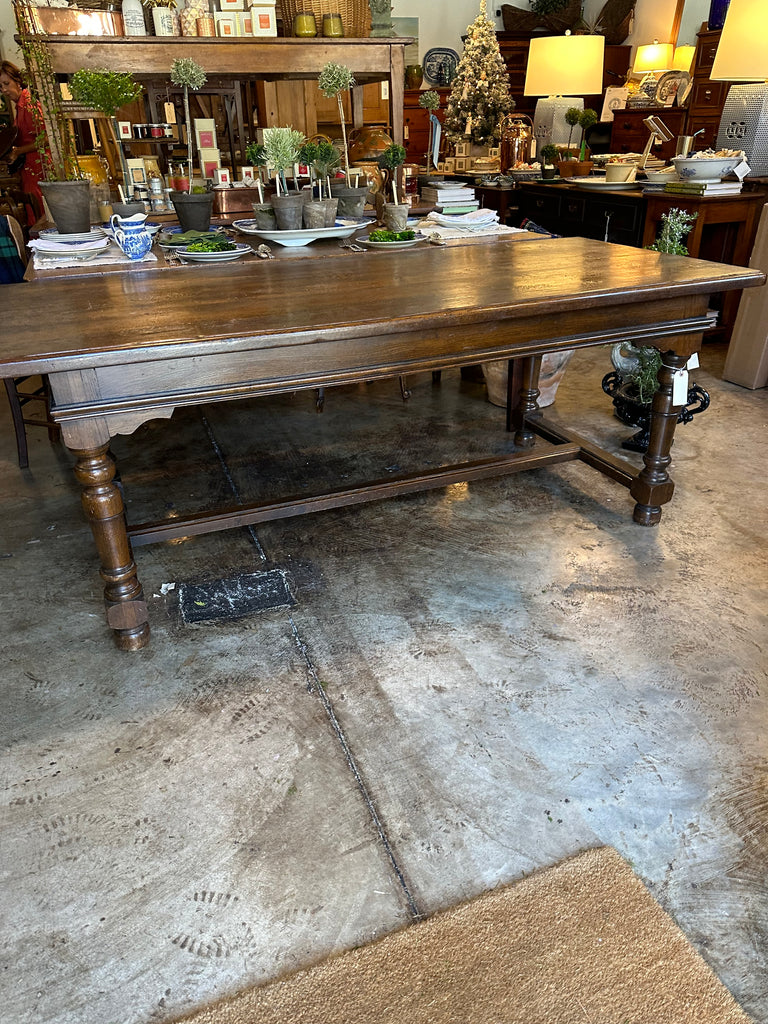 English Oak Dining Table with Stretcher Base