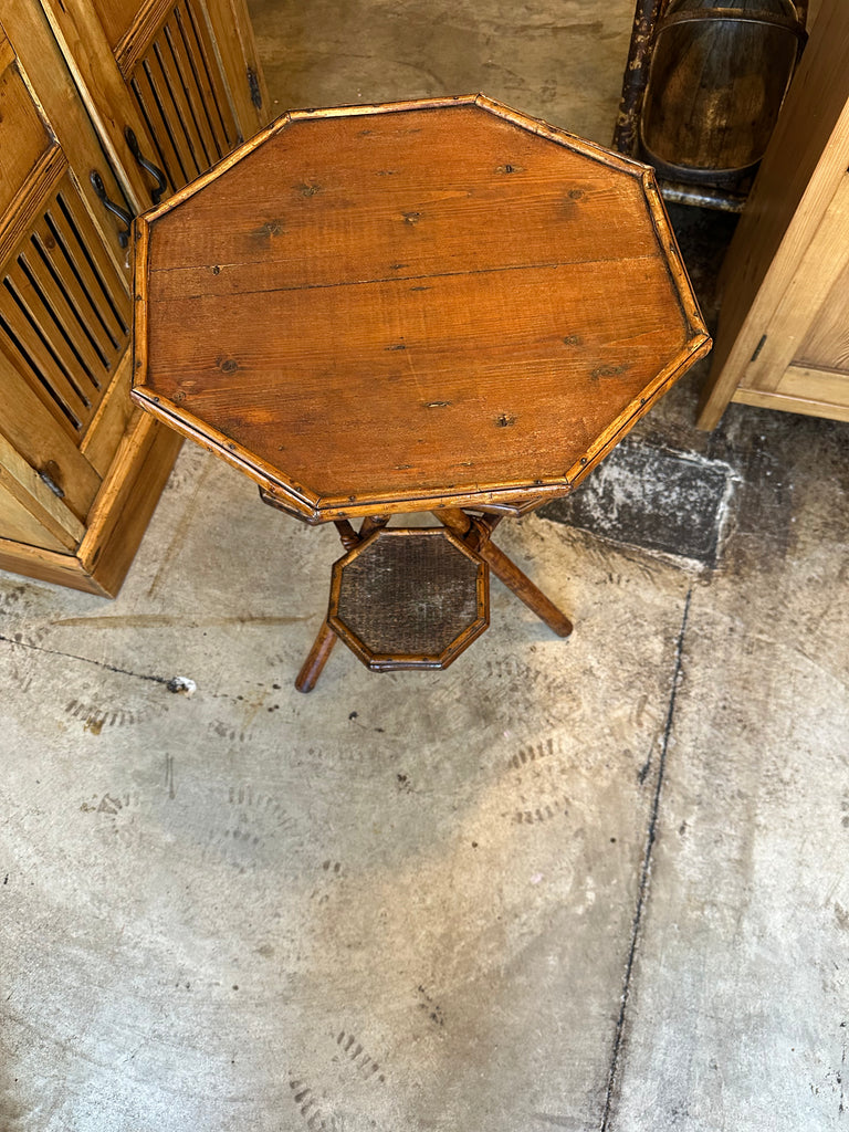 Octagonal Bamboo Table with Pine Top and Three Small Shelves