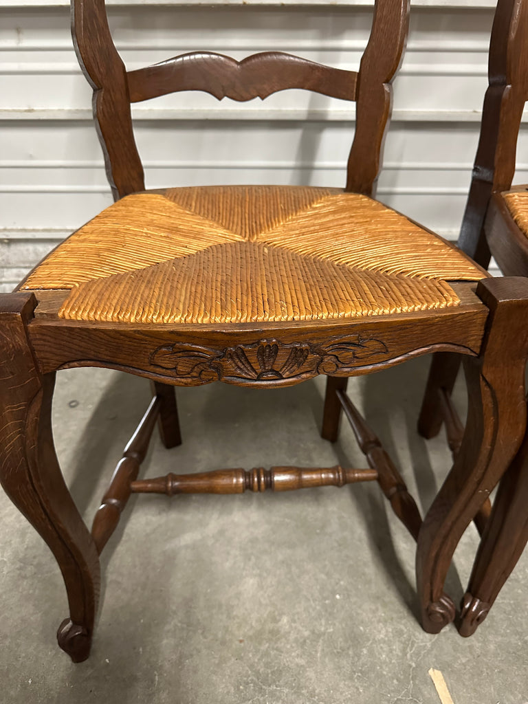 Set of 2 French Ladder Back, Rush Seated Chairs