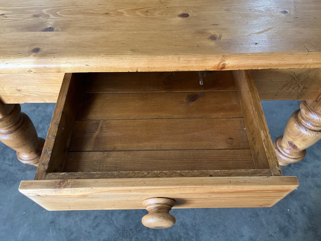 Small Pine Coffee Table with One Drawer and Turned Legs