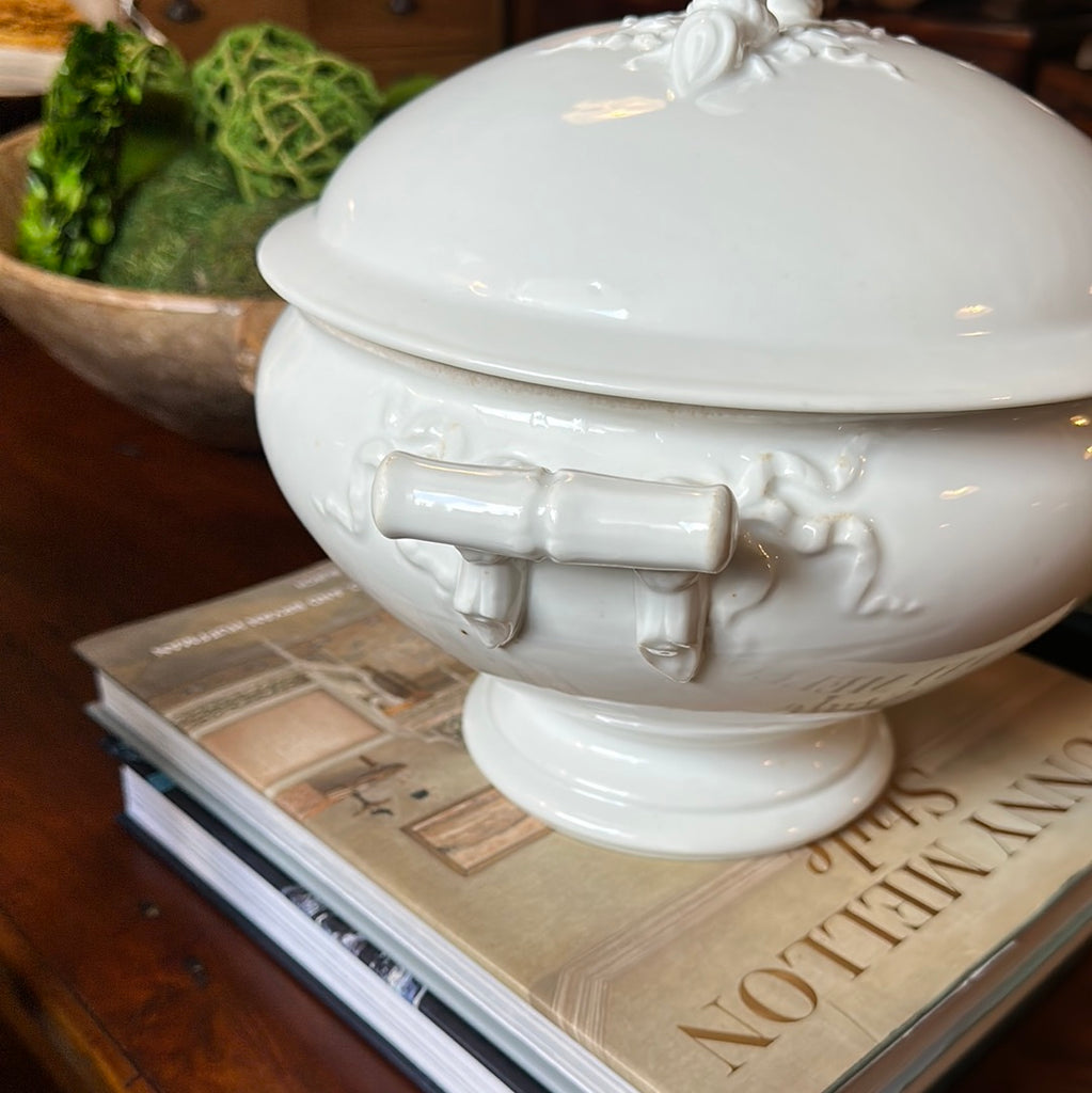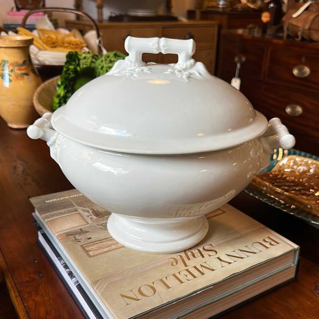 This White Soupiere, from France, is perfect for serving soups and other dishes. The simple design makes it an easy, but elegant centerpiece or focal point in your home.