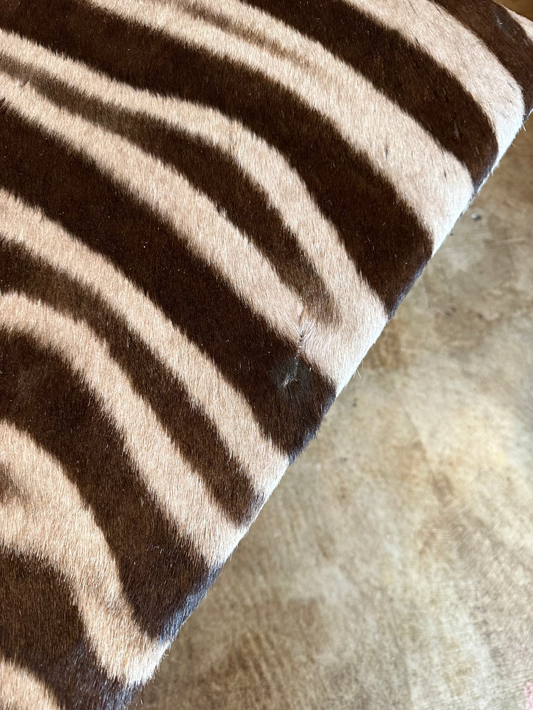 The Burchell's zebra was sustainably harvested by Stefan Kruger* of SD Kruger Safaris at a wildlife reserve in South Africa. The sustainable harvesting of zebras provides revenue for the maintenance of the reserve and the management of biodiversity. The reserve provides jobs for local laborers. The skin was imported with permits from the US Fish and Wildlife Service, US Department of Interior.